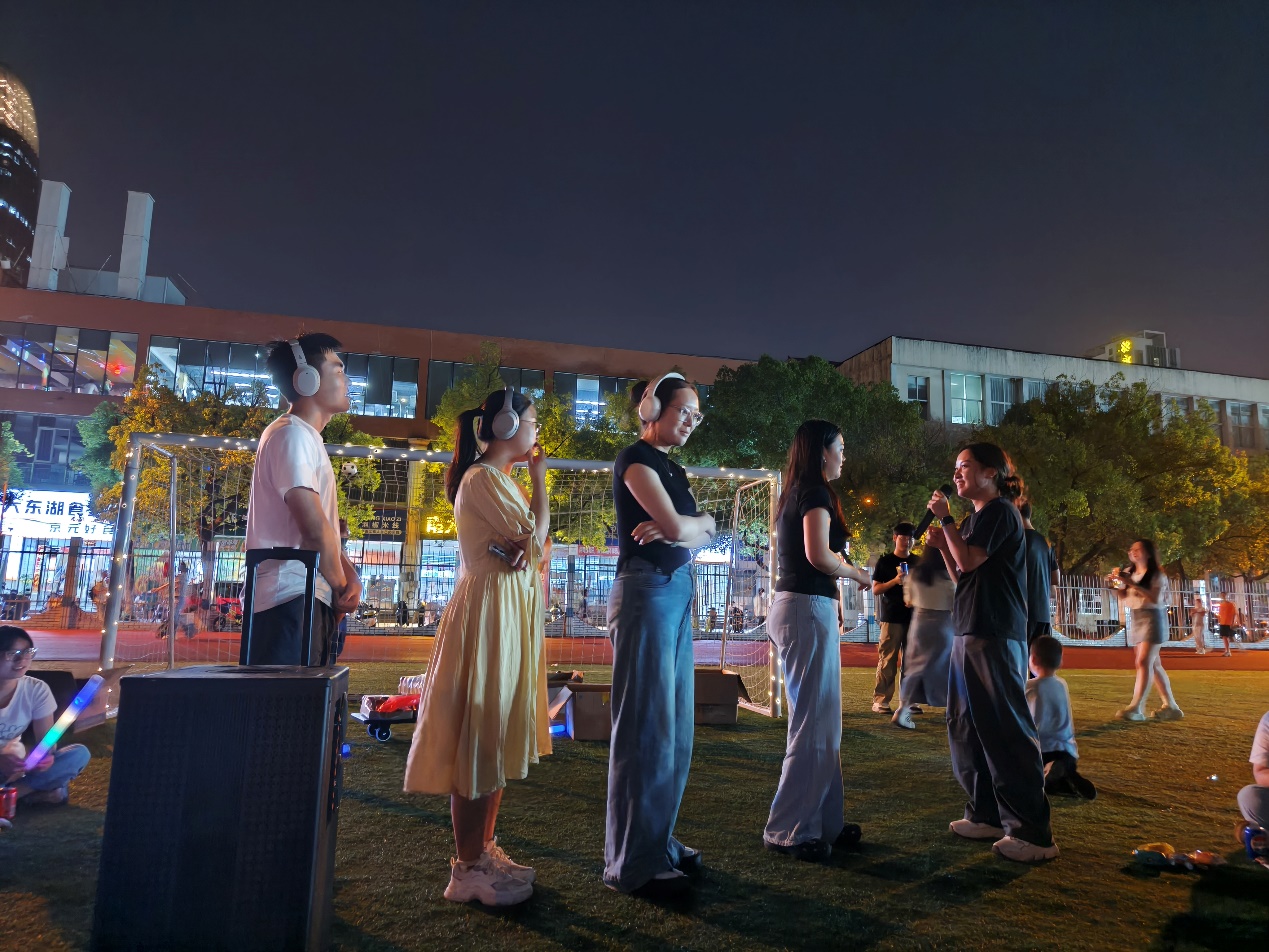 夜幕降临,田径场上灯光闪烁。活动在《Red Lips》《霓虹甜心》等动感旋律中正式开场。绚烂的小彩灯与舞动的荧光棒交织闪烁,共同营造出温馨又热烈的现场氛围。