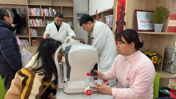 讲座结束后,医院专家团队携带专业设备,为妇女儿童提供免费视力检测、眼压测量、电脑验光、裂隙灯检查、眼底检查、眼轴测量、角膜曲率等眼科检查,重点针对干眼症、视疲劳、屈光不正、白内障、儿童近视防控等常见眼病问题进行细致检查与评估,并给出个性化诊疗建议。