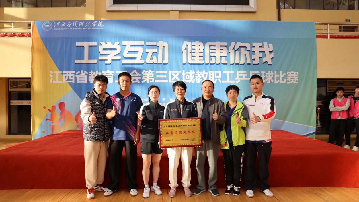 本院讯(毛宇报道)近日,我院乒乓球队在参加江西省教育工会第三区域教职工乒乓球比赛及南昌大学第十三届“健身杯”乒乓球赛期间,凭借良好的精神风貌与文明的体育风尚,荣获“体育道德风尚奖”。队员们在场上的出色表现,充分展现了我院教职工奋勇争先、团结协作的精神,赢得了组委会及各参赛单位的一致好评。