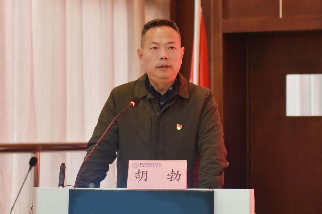 本院讯(曾荣报道)为深入学习贯彻党的二十届四中全会精神,凝聚全院师生思想共识,引导大家把思想和行动统一到党中央决策部署上来,12月4日下午,我院党委在东湖校区图书馆4楼学术报告厅隆重举行了党的二十届四中全会精神宣讲会暨2025年党委理论学习中心组学习(扩大)会。会议邀请了校党委常委、副校长潘秉兴来院为师生作宣讲报告,院领导班子成员、全体中层干部、医护代表、学生代表220余人参加了此次宣讲会。会议由院党委书记胡勃主持。