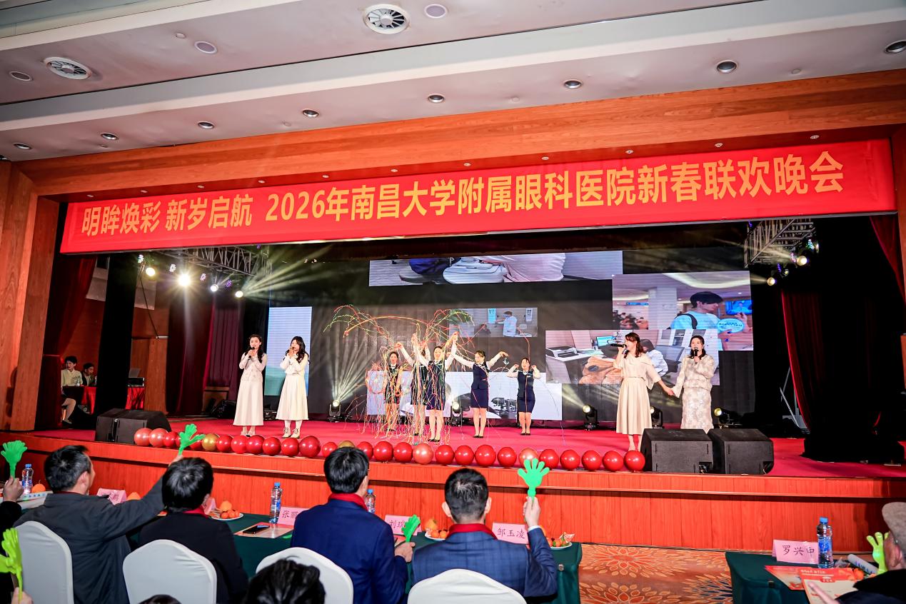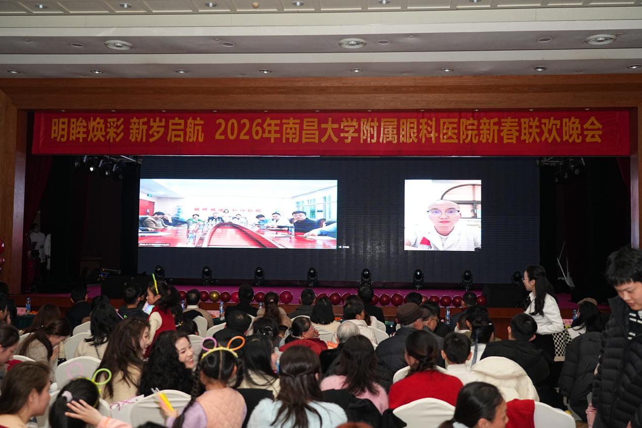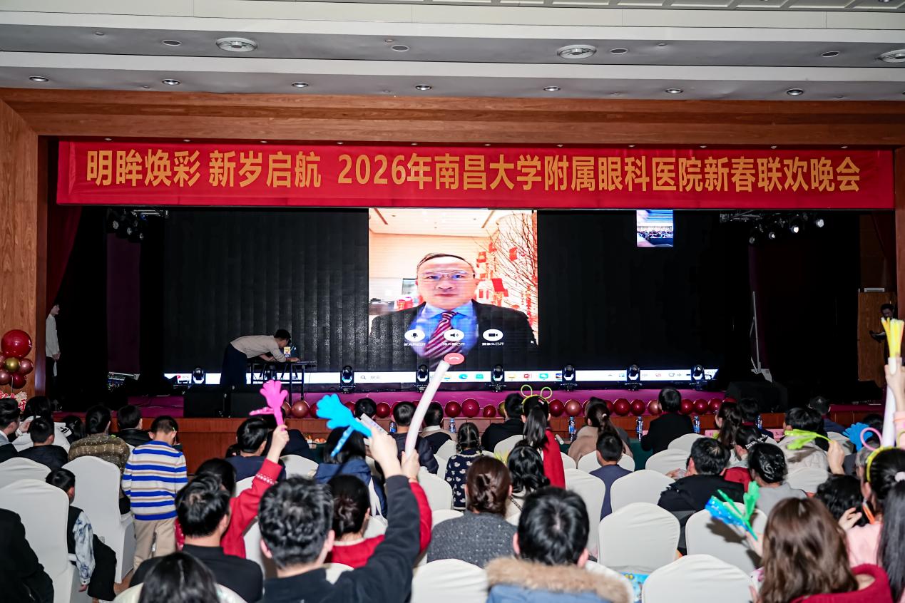 本院讯(毛宇报道)明眸焕彩,新岁启航。2月6日晚,南昌大学附属眼科医院2026年新春联欢晚会精彩启幕。院领导胡勃、游志鹏、张丽风、邱文文、刘瑞聪、古学军、邹玉凌、汤军明与全院干部职工、家属、学生代表等700余人欢聚一堂,在歌舞与欢笑中辞旧迎新,共赴一场承载医心与梦想的新春盛宴。