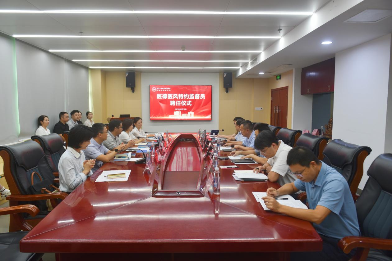 本院讯(邓良良报道)为深入贯彻集中整治医德医风有关问题工作以及清廉医院建设要求,进一步拓宽社会监督渠道,持续改善群众就医体验,10月16日下午,我院举行医德医风特约监督员聘任仪式。来自高校、企事业单位及社会各界5名监督员参加,院党委书记胡勃、院长游志鹏等在家院领导出席,各相关部门、科室负责人列席,仪式由纪委书记邱文文主持。
