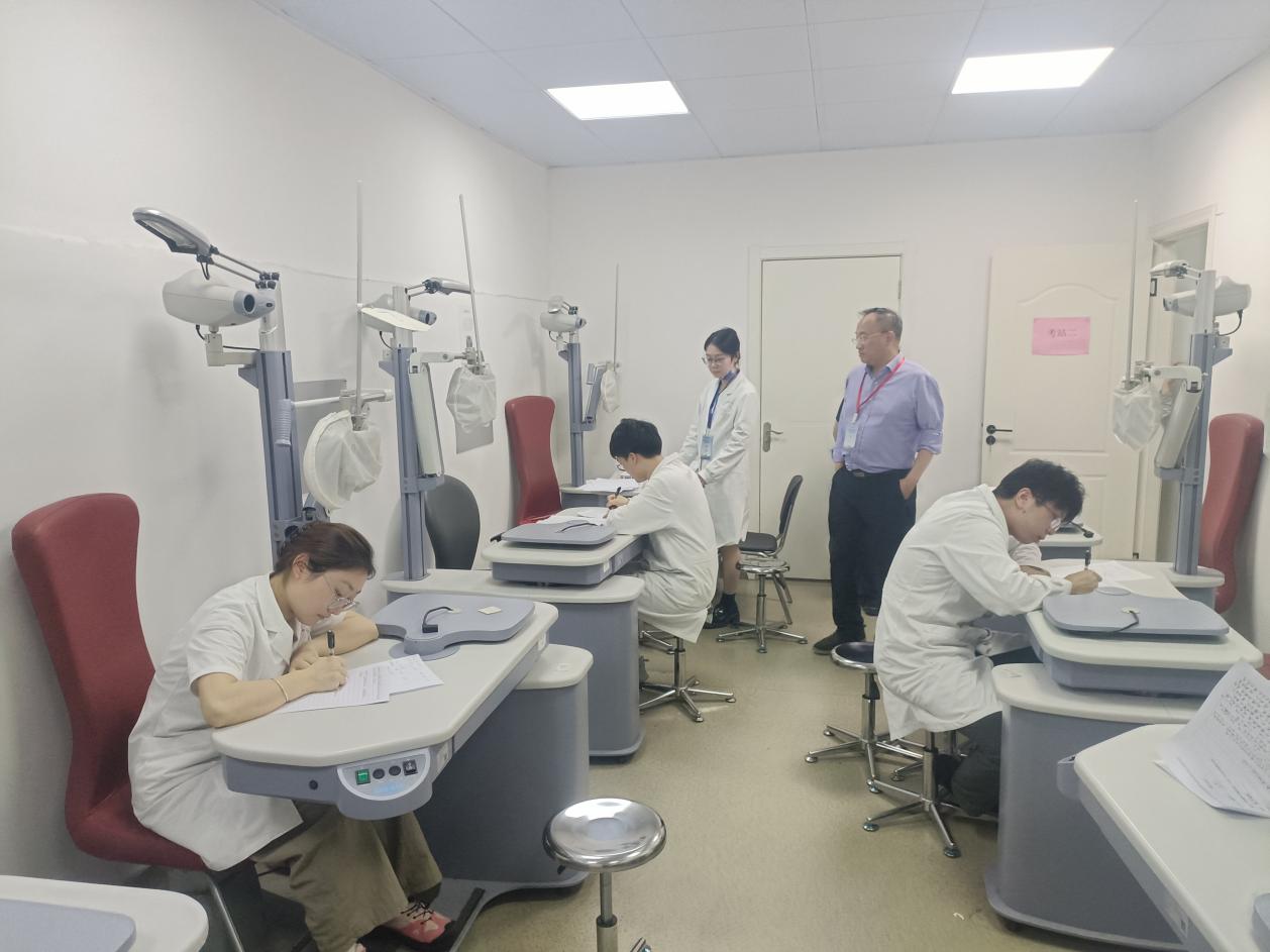 竞赛由副院长廖洪斐担任主考官,门诊部副主任杜红岩担任副主考官。比赛现场秩序井然、氛围热烈。参赛选手沉着应战:接诊问询时思路清晰、细致认真,展现出扎实的理论功底;实操比拼中动作规范、手法娴熟,严格遵循医疗操作标准,每一个步骤都精准到位,充分体现了眼科住院医师严谨的行医态度和良好的职业素养。考官们秉持公平、公正、公开的原则,对选手表现进行细致点评和严格打分,并针对操作细节问题给予专业指导,让参赛人员在竞技中学习、在点评中提升。
