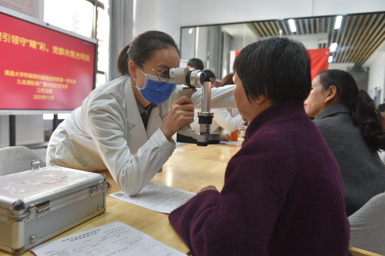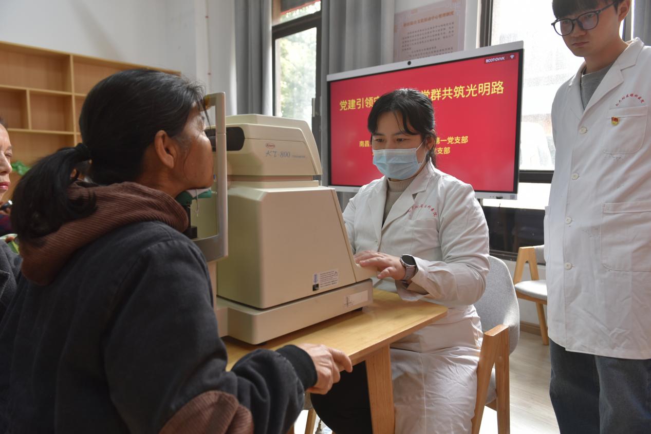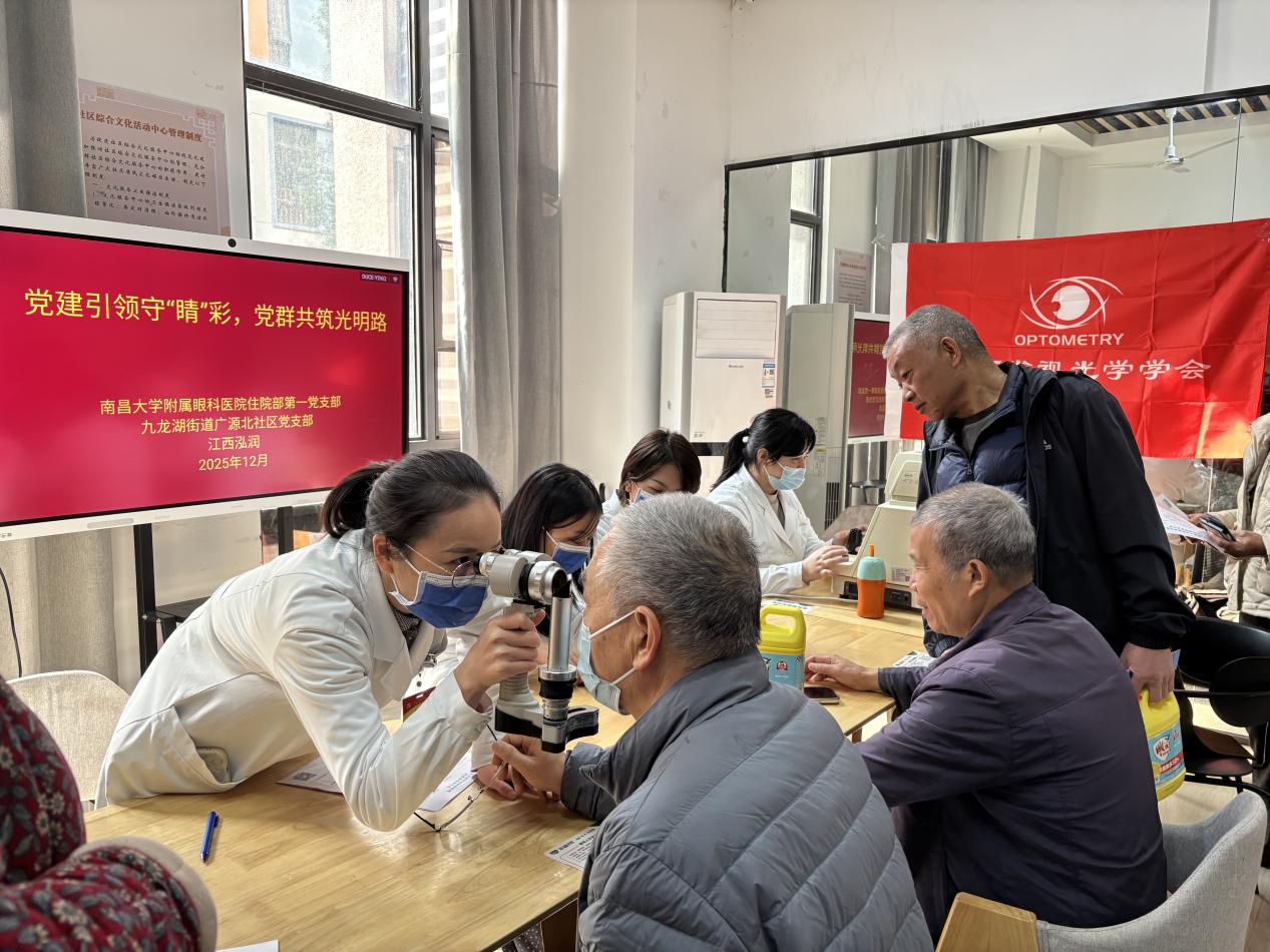 本院讯(常以力报道)为普及眼健康知识,提升老年人的爱眼护眼意识和自我保健能力,12月4日,南昌大学附属眼科医院住院部第一党支部联合相关职能部门,组织专业医护团队走进红谷滩区广源北社区,将专业的眼科诊室“搬”到了居民家门口。一场以“党建引领守‘睛’彩,党群共筑光明路”为主题的结对共建义诊活动,让社区居民在家门口享受到三甲医院优质、便捷的眼健康服务。