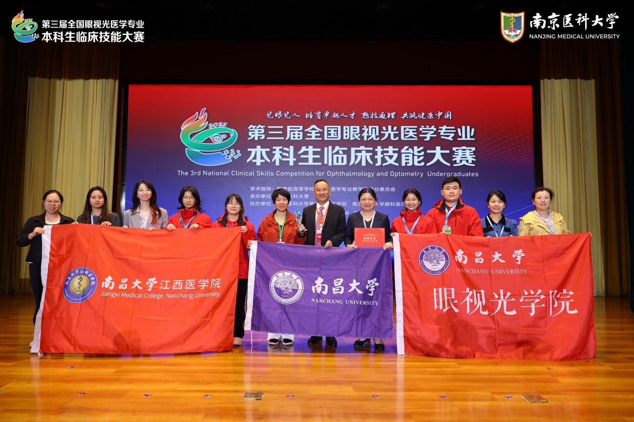 10月18日,第三届全国眼视光医学专业本科生临床技能大赛总决赛在南京医科大学圆满落幕。来自全国21所医学院校的代表队同场竞技,展开激烈角逐。南昌大学眼视光学院代表队凭借扎实的专业功底、稳定的临场发挥和全面的综合素养,最终以总分第四名的成绩荣获大赛银奖,充分展现了南昌大学眼视光医学专业学生卓越的临床技能与团队风采。