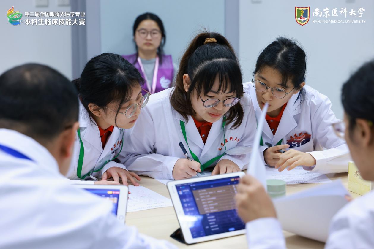 我校代表队由2022级眼视光医学专业吴承娇、姚文丽、韩雯钰、徐嘉诚四位同学组成。院长游志鹏教授担任项目指导教师,全程负责专业指导与技术训练;党委副书记张丽风担任领队,统筹协调赛事安排与后勤保障。备赛期间,党委书记胡勃多次关心训练进展,勉励师生团队以赛促学、锤炼本领。江西医学院教务办公室主任王颖及我院培训教师刘艳、刘淼、饶婷、林娜娜、李悦、余晓、汪子希等赴南京观摩。