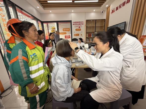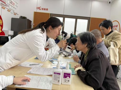 随后,医护团队为到场群众开展细致的眼科专项检查,针对不同群体精准施策、贴心服务。对儿童群体,医护人员仔细检测视力,手把手指导正确读写姿势,同时叮嘱家长重视孩子户外活动时长,严格管控电子产品使用时间,从源头做好近视防控;针对成年居民尤其是老年群体,重点开展眼底检查,根据每位老人的检查结果,从日常护眼技巧、合理用药规范到后续诊疗方案,逐一提供个性化专业指导。