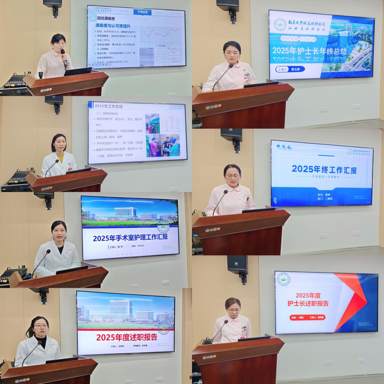 会上,各科室护士长依次汇报了2025年度护理工作,重点围绕护理业务量、质量安全、科室管理、团队建设、教学科研及患者满意度等方面,通过数据与案例展示工作成效与亮点,客观分析存在的问题与不足,并围绕深化专业内涵、优化服务流程等内容,提出了2026年度护理工作计划与目标。